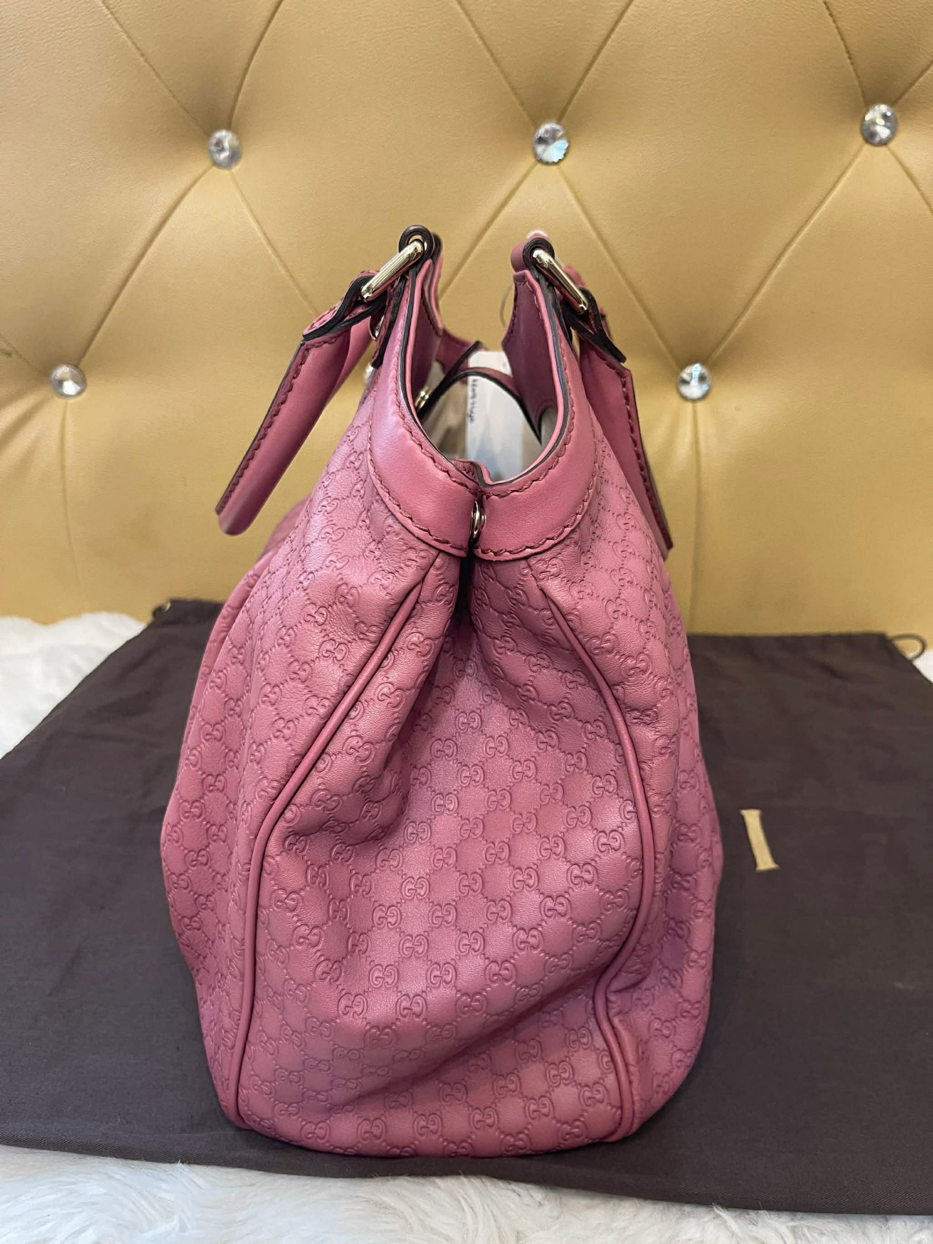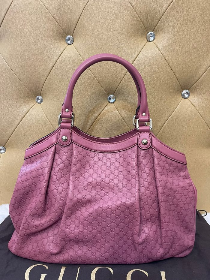 The Gucci Sukey Bag is one of Gucci’s most recognizable everyday totes from the late 2000s and early 2010s. It became popular for its roomy design, soft structure, and signature GG details, making it a practical yet stylish choice.