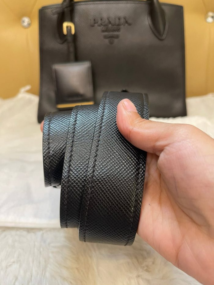 Logo: Tonal Prada logo in matching leather or enamel, blending seamlessly with the bag.