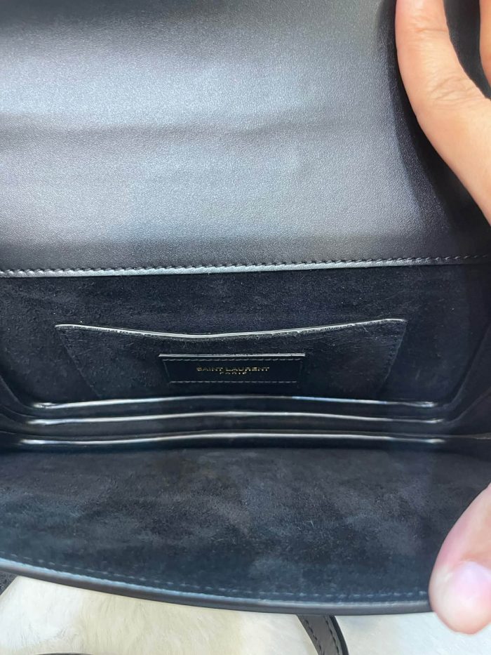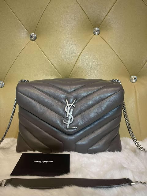 The Saint Laurent Dylan Bag is a structured leather crossbody/shoulder bag featuring the iconic Cassandre YSL logo in gold-tone hardware.