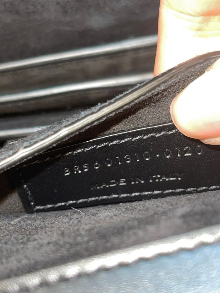 Strap: Leather strap that can be worn doubled (shoulder) or long (crossbody).